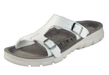 Birko-FlorManufacturer: AlproProduct name: P 100Product type: slippersColor: Basic WhiteMaterial: Birko-FlorSole: Alpro-FoamBuckle: Regular Buckle