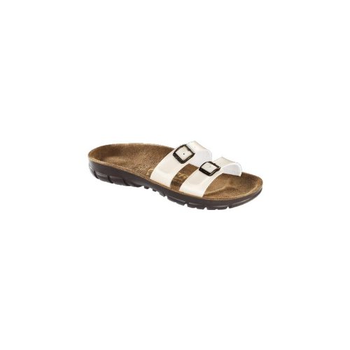 Birko-FlorManufacturer: AlproProduct name: P 180Product type: slippersColor: Sparkle WhiteMaterial: Birko-FlorSole: Alpro-FoamBuckle: Regular Buckle