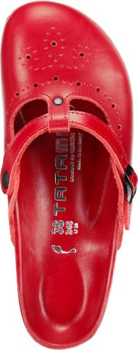 Tatami clogs Samara from Leather in Red Perforated with a regular insole